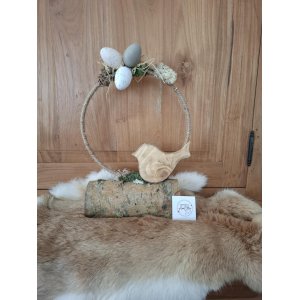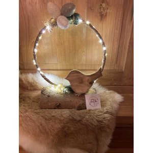 We werken met allerlei -meestal natuurlijke- materialen, jute, vilt, katoen, hout, draad en touw... daar voegen we allerlei extra's aan toe als lichtdraden, kralen, mos, schors, themagebonden accesoires en zoveel meer.