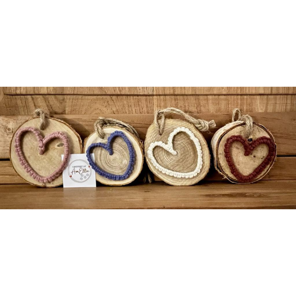 natuurhouten schijfje met macramé hartje